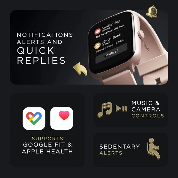 boAt Wave Style Call Smart Watch with Advanced BT Calling Chip,DIY Watch Face Studio, Coins, 1.69" HD Display, Health Ecosystem, Live Cricket Scores, Quick Replies, HR & SpO2(Cherry Blossom)
