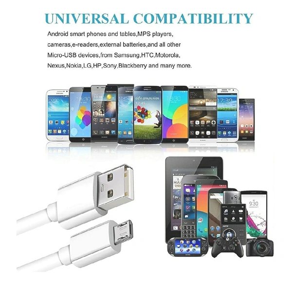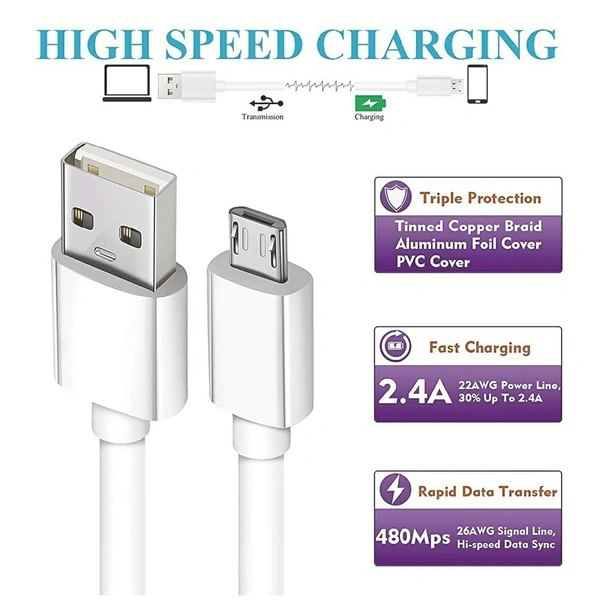 USB Cable for Vivo V11 Pro USB Cable | Micro USB Data Cable | Quick Fast Charging Cable, Charger Cable,Transfer Android V8 Cable || 2.4 Amp, 1 M, White Cable (Pack10)